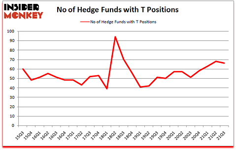 At Q3’s end, a total of 66 of the hedge funds tracked by Insider Monkey held long positions in this stock, a change of -3% from the second quarter of 2021. The graph below displays the number of hedge funds with bullish position in T over the last 25 quarters. With hedgies’ capital changing hands, there exists a select group of key hedge fund managers who were increasing their stakes significantly (or already accumulated large positions).