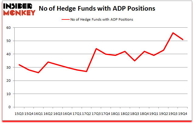 Automatic Data Processing, Inc. (NASDAQ:ADP) has seen a decrease in activity from the world’s largest hedge funds of late. ADP was in 51 hedge funds’ portfolios at the end of the fourth quarter of 2019. There were 56 hedge funds in our database with ADP positions at the end of the previous quarter. Our calculations also showed that ADP isn’t among the 30 most popular stocks among hedge funds (click for Q4 rankings and see the video below for Q3 rankings).