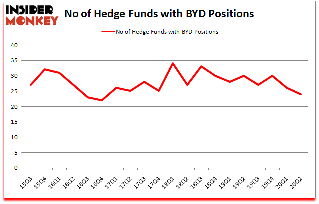 Boyd Gaming Corporation (NYSE:BYD) has seen a decrease in hedge fund sentiment recently. Boyd Gaming Corporation (NYSE:BYD) was in 24 hedge funds’ portfolios at the end of the second quarter of 2020. The all time high for this statistics is 34. Our calculations also showed that BYD isn’t among the 30 most popular stocks among hedge funds (click for Q2 rankings and see the video for a quick look at the top 5 stocks).