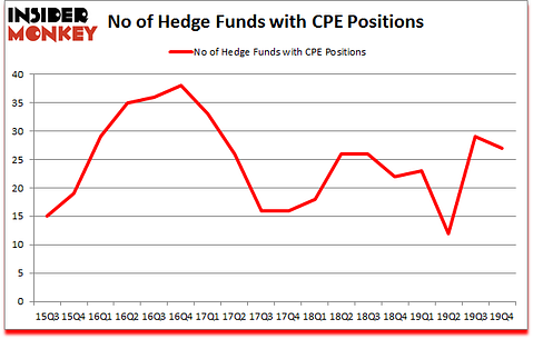 At the end of the fourth quarter, a total of 27 of the hedge funds tracked by Insider Monkey were bullish on this stock, a change of -7% from the previous quarter. By comparison, 22 hedge funds held shares or bullish call options in CPE a year ago. So, let’s examine which hedge funds were among the top holders of the stock and which hedge funds were making big moves.