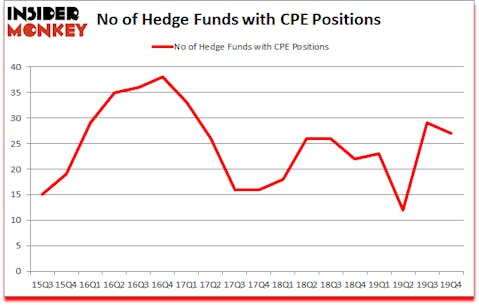 At the end of the fourth quarter, a total of 27 of the hedge funds tracked by Insider Monkey were bullish on this stock, a change of -7% from the previous quarter. By comparison, 22 hedge funds held shares or bullish call options in CPE a year ago. So, let’s examine which hedge funds were among the top holders of the stock and which hedge funds were making big moves.