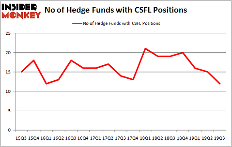 At the end of the third quarter, a total of 12 of the hedge funds tracked by Insider Monkey held long positions in this stock, a change of -20% from the previous quarter. The graph below displays the number of hedge funds with bullish position in CSFL over the last 17 quarters. With the smart money’s capital changing hands, there exists an “upper tier” of noteworthy hedge fund managers who were increasing their stakes substantially (or already accumulated large positions).