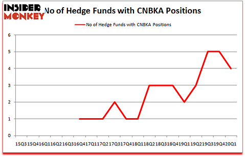 At Q1’s end, a total of 4 of the hedge funds tracked by Insider Monkey were long this stock, a change of -20% from one quarter earlier. The graph below displays the number of hedge funds with bullish position in CNBKA over the last 18 quarters. With hedge funds’ capital changing hands, there exists a select group of key hedge fund managers who were upping their stakes substantially (or already accumulated large positions).