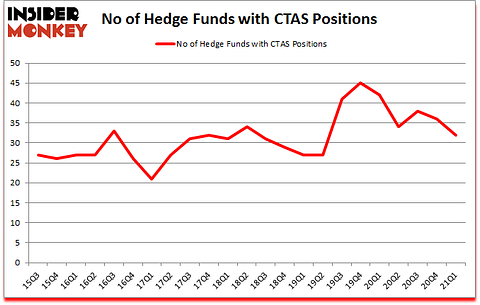 At the end of the first quarter, a total of 32 of the hedge funds tracked by Insider Monkey were bullish on this stock, a change of -11% from one quarter earlier. The graph below displays the number of hedge funds with bullish position in CTAS over the last 23 quarters. So, let’s find out which hedge funds were among the top holders of the stock and which hedge funds were making big moves.