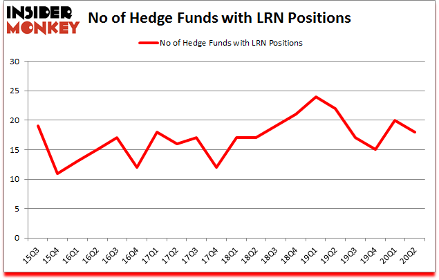 At second quarter’s end, a total of 18 of the hedge funds tracked by Insider Monkey were bullish on this stock, a change of -10% from the previous quarter. The graph below displays the number of hedge funds with bullish position in LRN over the last 20 quarters. So, let’s check out which hedge funds were among the top holders of the stock and which hedge funds were making big moves.