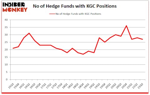 Heading into the fourth quarter of 2021, a total of 27 of the hedge funds tracked by Insider Monkey were bullish on this stock, a change of -4% from one quarter earlier. The graph below displays the number of hedge funds with bullish position in KGC over the last 25 quarters. So, let’s see which hedge funds were among the top holders of the stock and which hedge funds were making big moves.