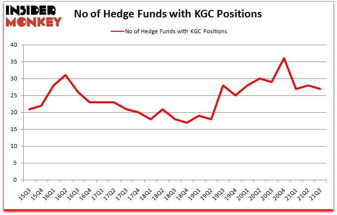 Heading into the fourth quarter of 2021, a total of 27 of the hedge funds tracked by Insider Monkey were bullish on this stock, a change of -4% from one quarter earlier. The graph below displays the number of hedge funds with bullish position in KGC over the last 25 quarters. So, let’s see which hedge funds were among the top holders of the stock and which hedge funds were making big moves.