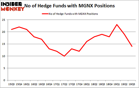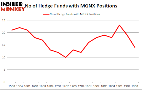 Heading into the fourth quarter of 2019, a total of 14 of the hedge funds tracked by Insider Monkey held long positions in this stock, a change of -26% from the second quarter of 2019. The graph below displays the number of hedge funds with bullish position in MGNX over the last 17 quarters. So, let’s check out which hedge funds were among the top holders of the stock and which hedge funds were making big moves.