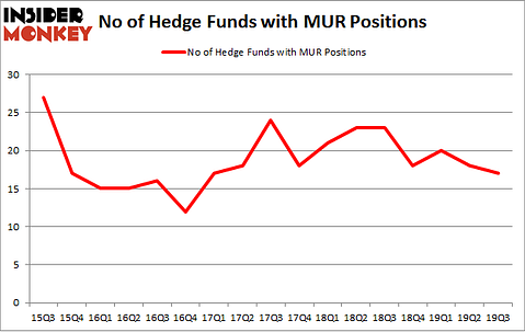 At the end of the third quarter, a total of 17 of the hedge funds tracked by Insider Monkey held long positions in this stock, a change of -6% from the second quarter of 2019. On the other hand, there were a total of 23 hedge funds with a bullish position in MUR a year ago. So, let’s examine which hedge funds were among the top holders of the stock and which hedge funds were making big moves.