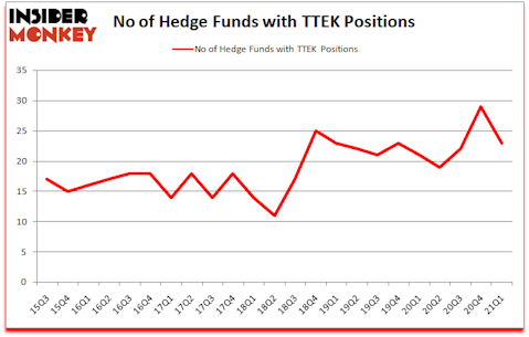 At Q1’s end, a total of 23 of the hedge funds tracked by Insider Monkey held long positions in this stock, a change of -21% from the fourth quarter of 2020. Below, you can check out the change in hedge fund sentiment towards TTEK over the last 23 quarters. So, let’s check out which hedge funds were among the top holders of the stock and which hedge funds were making big moves.