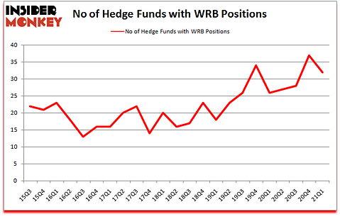 At the end of March, a total of 32 of the hedge funds tracked by Insider Monkey were long this stock, a change of -14% from one quarter earlier. The graph below displays the number of hedge funds with bullish position in WRB over the last 23 quarters. With hedgies’ positions undergoing their usual ebb and flow, there exists a few notable hedge fund managers who were adding to their holdings substantially (or already accumulated large positions).