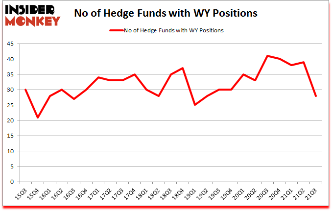 Heading into the fourth quarter of 2021, a total of 28 of the hedge funds tracked by Insider Monkey held long positions in this stock, a change of -28% from the second quarter of 2021. Below, you can check out the change in hedge fund sentiment towards WY over the last 25 quarters. So, let’s see which hedge funds were among the top holders of the stock and which hedge funds were making big moves.