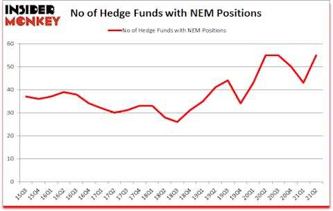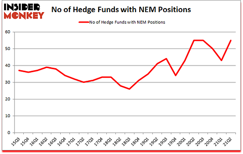 Newmont Corporation (NYSE:NEM) investors should pay attention to an increase in enthusiasm from smart money in recent months. Newmont Corporation (NYSE:NEM) was in 55 hedge funds’ portfolios at the end of the second quarter of 2021. The all time high for this statistic is 55. This means the bullish number of hedge fund positions in this stock currently sits at its all time high. Our calculations also showed that NEM isn’t among the 30 most popular stocks among hedge funds (click for Q2 rankings).