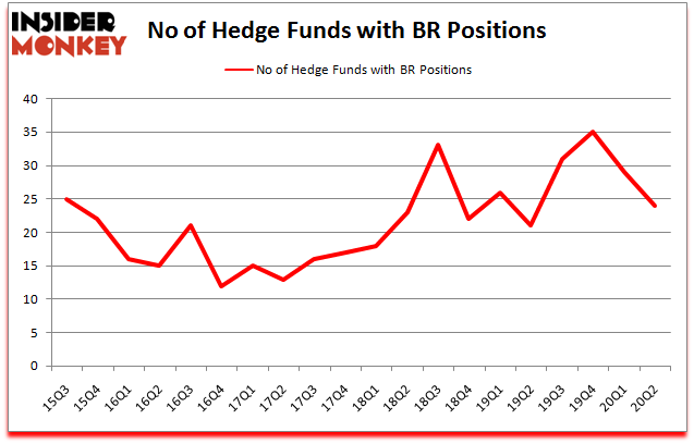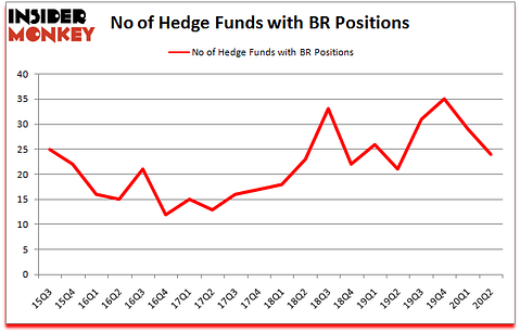 At Q2’s end, a total of 24 of the hedge funds tracked by Insider Monkey were bullish on this stock, a change of -17% from the first quarter of 2020. The graph below displays the number of hedge funds with bullish position in BR over the last 20 quarters. So, let’s find out which hedge funds were among the top holders of the stock and which hedge funds were making big moves.