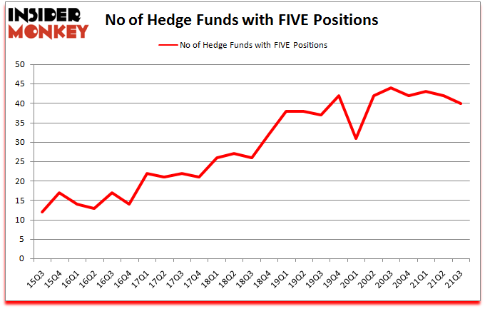 Five Below Inc (NASDAQ:FIVE) has experienced a decrease in hedge fund sentiment of late. Five Below Inc (NASDAQ:FIVE) was in 40 hedge funds’ portfolios at the end of the third quarter of 2021. The all time high for this statistic is 44. There were 42 hedge funds in our database with FIVE holdings at the end of June. Our calculations also showed that FIVE isn’t among the 30 most popular stocks among hedge funds (click for Q3 rankings).