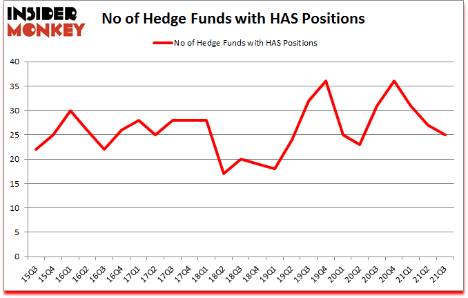 Hasbro, Inc. (NASDAQ:HAS) was in 25 hedge funds’ portfolios at the end of September. The all time high for this statistic is 36. HAS investors should pay attention to a decrease in hedge fund interest recently. There were 27 hedge funds in our database with HAS positions at the end of the second quarter. Our calculations also showed that HAS isn’t among the 30 most popular stocks among hedge funds (click for Q3 rankings).