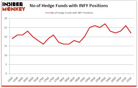 Infosys Limited (NYSE:INFY) shareholders have witnessed a decrease in hedge fund sentiment recently. Infosys Limited (NYSE:INFY) was in 22 hedge funds’ portfolios at the end of the second quarter of 2021. The all time high for this statistic is 27. There were 26 hedge funds in our database with INFY holdings at the end of March. Our calculations also showed that INFY isn’t among the 30 most popular stocks among hedge funds (click for Q2 rankings).