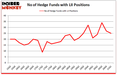 Lennox International Inc. (NYSE:LII) investors should pay attention to a decrease in hedge fund sentiment in recent months. Lennox International Inc. (NYSE:LII) was in 25 hedge funds’ portfolios at the end of the first quarter of 2021. The all time high for this statistic is 34. Our calculations also showed that LII isn’t among the 30 most popular stocks among hedge funds (click for Q1 rankings).