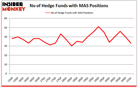 At first quarter’s end, a total of 33 of the hedge funds tracked by Insider Monkey were long this stock, a change of -18% from one quarter earlier. By comparison, 34 hedge funds held shares or bullish call options in MAS a year ago. So, let’s find out which hedge funds were among the top holders of the stock and which hedge funds were making big moves.
