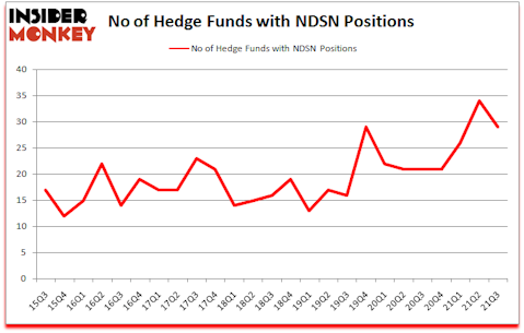 At third quarter’s end, a total of 29 of the hedge funds tracked by Insider Monkey were bullish on this stock, a change of -15% from the previous quarter. By comparison, 21 hedge funds held shares or bullish call options in NDSN a year ago. With hedge funds’ capital changing hands, there exists a few notable hedge fund managers who were adding to their holdings significantly (or already accumulated large positions).