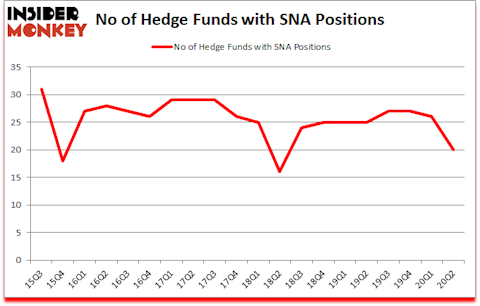 Heading into the third quarter of 2020, a total of 20 of the hedge funds tracked by Insider Monkey were bullish on this stock, a change of -23% from the first quarter of 2020. Below, you can check out the change in hedge fund sentiment towards SNA over the last 20 quarters. So, let’s check out which hedge funds were among the top holders of the stock and which hedge funds were making big moves.