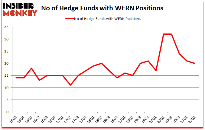 At the end of the second quarter, a total of 20 of the hedge funds tracked by Insider Monkey were bullish on this stock, a change of -5% from one quarter earlier. The graph below displays the number of hedge funds with bullish position in WERN over the last 24 quarters. With hedgies’ positions undergoing their usual ebb and flow, there exists a few notable hedge fund managers who were upping their stakes considerably (or already accumulated large positions).