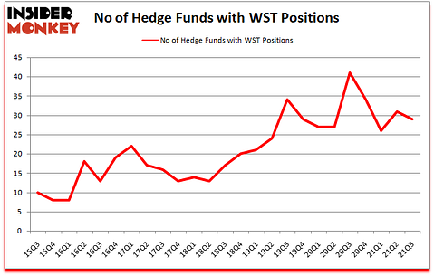 Heading into the fourth quarter of 2021, a total of 29 of the hedge funds tracked by Insider Monkey held long positions in this stock, a change of -6% from one quarter earlier. Below, you can check out the change in hedge fund sentiment towards WST over the last 25 quarters. So, let’s review which hedge funds were among the top holders of the stock and which hedge funds were making big moves.