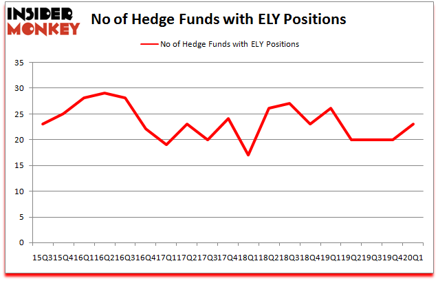At the end of the first quarter, a total of 23 of the hedge funds tracked by Insider Monkey were bullish on this stock, a change of 15% from the previous quarter. The graph below displays the number of hedge funds with bullish position in ELY over the last 18 quarters. With hedgies’ sentiment swirling, there exists an “upper tier” of noteworthy hedge fund managers who were upping their holdings considerably (or already accumulated large positions).