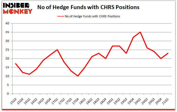 At the end of March, a total of 23 of the hedge funds tracked by Insider Monkey held long positions in this stock, a change of 15% from one quarter earlier. The graph below displays the number of hedge funds with bullish position in CHRS over the last 23 quarters. With the smart money’s sentiment swirling, there exists a select group of noteworthy hedge fund managers who were increasing their holdings meaningfully (or already accumulated large positions).