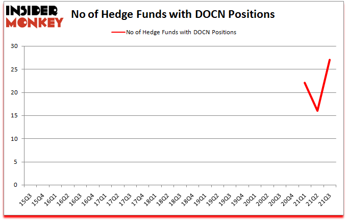 DigitalOcean Holdings, Inc. (NYSE:DOCN) was in 27 hedge funds’ portfolios at the end of September. The all time high for this statistic was previously 22. This means the bullish number of hedge fund positions in this stock currently sits at its all time high. DOCN investors should pay attention to an increase in hedge fund interest in recent months. There were 16 hedge funds in our database with DOCN holdings at the end of June. Our calculations also showed that DOCN isn’t among the 30 most popular stocks among hedge funds (click for Q3 rankings).
