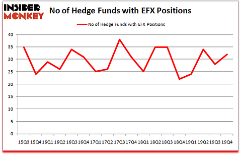 At the end of the fourth quarter, a total of 32 of the hedge funds tracked by Insider Monkey held long positions in this stock, a change of 14% from one quarter earlier. The graph below displays the number of hedge funds with bullish position in EFX over the last 18 quarters. So, let’s examine which hedge funds were among the top holders of the stock and which hedge funds were making big moves.