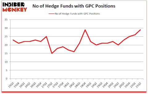 Genuine Parts Company (NYSE:GPC) has experienced an increase in hedge fund interest of late. Genuine Parts Company (NYSE:GPC) was in 29 hedge funds’ portfolios at the end of the second quarter of 2021. The all time high for this statistic is 29. This means the bullish number of hedge fund positions in this stock currently sits at its all time high. There were 26 hedge funds in our database with GPC positions at the end of the first quarter. Our calculations also showed that GPC isn’t among the 30 most popular stocks among hedge funds (click for Q2 rankings).
