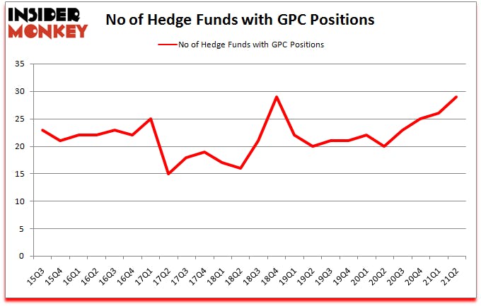 Heading into the third quarter of 2021, a total of 29 of the hedge funds tracked by Insider Monkey were bullish on this stock, a change of 12% from the previous quarter. Below, you can check out the change in hedge fund sentiment towards GPC over the last 24 quarters. So, let’s review which hedge funds were among the top holders of the stock and which hedge funds were making big moves.