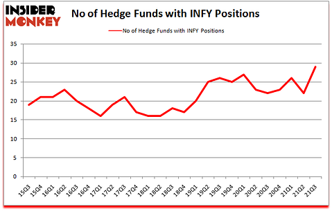 Infosys Limited (NYSE:INFY) investors should pay attention to an increase in hedge fund sentiment of late. Infosys Limited (NYSE:INFY) was in 29 hedge funds’ portfolios at the end of September. The all time high for this statistic was previously 27. This means the bullish number of hedge fund positions in this stock currently sits at its all time high. There were 22 hedge funds in our database with INFY holdings at the end of June. Our calculations also showed that INFY isn’t among the 30 most popular stocks among hedge funds (click for Q3 rankings).