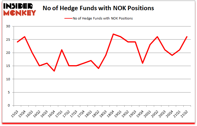 Nokia Corporation (NYSE:NOK) was in 26 hedge funds’ portfolios at the end of the second quarter of 2021. The all time high for this statistic is 27. NOK investors should pay attention to an increase in hedge fund sentiment in recent months. There were 21 hedge funds in our database with NOK positions at the end of the first quarter. Our calculations also showed that NOK isn’t among the 30 most popular stocks among hedge funds (click for Q2 rankings).