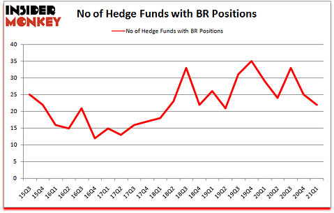 Broadridge Financial Solutions, Inc. (NYSE:BR) has seen a decrease in hedge fund interest of late. Broadridge Financial Solutions, Inc. (NYSE:BR) was in 22 hedge funds’ portfolios at the end of the first quarter of 2021. The all time high for this statistic is 35. Our calculations also showed that BR isn’t among the 30 most popular stocks among hedge funds (click for Q1 rankings).