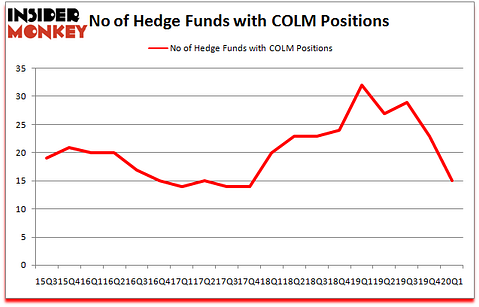 Columbia Sportswear Company (NASDAQ:COLM) was in 15 hedge funds’ portfolios at the end of the first quarter of 2020. COLM investors should pay attention to a decrease in hedge fund interest in recent months. There were 23 hedge funds in our database with COLM holdings at the end of the previous quarter. Our calculations also showed that COLM isn’t among the 30 most popular stocks among hedge funds (click for Q1 rankings and see the video for a quick look at the top 5 stocks).