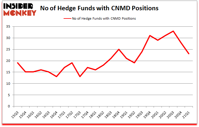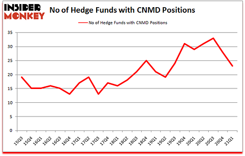 Heading into the second quarter of 2021, a total of 23 of the hedge funds tracked by Insider Monkey were long this stock, a change of -18% from the previous quarter. Below, you can check out the change in hedge fund sentiment towards CNMD over the last 23 quarters. So, let’s find out which hedge funds were among the top holders of the stock and which hedge funds were making big moves.