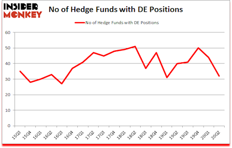 Deere & Company (NYSE:DE) investors should pay attention to a decrease in hedge fund sentiment of late. Deere & Company (NYSE:DE) was in 32 hedge funds’ portfolios at the end of the second quarter of 2020. The all time high for this statistics is 51. There were 44 hedge funds in our database with DE holdings at the end of March. Our calculations also showed that DE isn’t among the 30 most popular stocks among hedge funds (click for Q2 rankings and see the video for a quick look at the top 5 stocks).