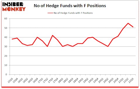 Ford Motor Company (NYSE:F) shareholders have witnessed a decrease in hedge fund sentiment in recent months. Ford Motor Company (NYSE:F) was in 51 hedge funds’ portfolios at the end of September. The all time high for this statistic is 55. There were 55 hedge funds in our database with F holdings at the end of June. Our calculations also showed that F isn’t among the 30 most popular stocks among hedge funds (click for Q3 rankings).