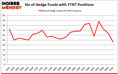 Fortinet Inc (NASDAQ:FTNT) was in 23 hedge funds’ portfolios at the end of March. The all time high for this statistic is 44. FTNT has seen a decrease in activity from the world’s largest hedge funds in recent months. There were 32 hedge funds in our database with FTNT positions at the end of the fourth quarter. Our calculations also showed that FTNT isn’t among the 30 most popular stocks among hedge funds (click for Q1 rankings).