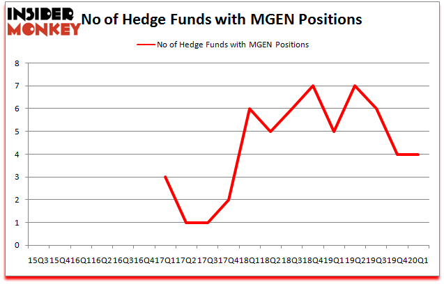 At Q1’s end, a total of 4 of the hedge funds tracked by Insider Monkey were bullish on this stock, a change of 0% from the fourth quarter of 2019. On the other hand, there were a total of 5 hedge funds with a bullish position in MGEN a year ago. So, let’s find out which hedge funds were among the top holders of the stock and which hedge funds were making big moves.