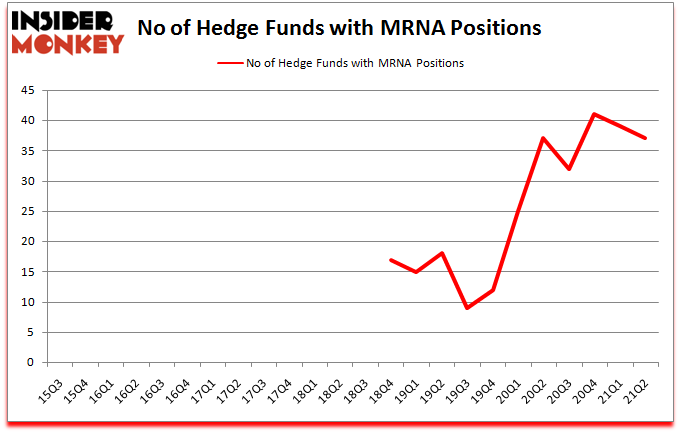 Moderna, Inc. (NASDAQ:MRNA) has experienced a decrease in hedge fund interest lately. Moderna, Inc. (NASDAQ:MRNA) was in 37 hedge funds’ portfolios at the end of the second quarter of 2021. The all time high for this statistic is 41. Our calculations also showed that MRNA isn’t among the 30 most popular stocks among hedge funds (click for Q2 rankings).