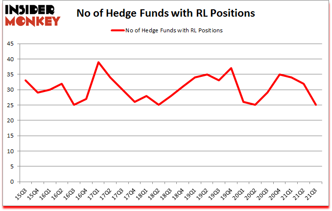 Is Ralph Lauren Corporation (NYSE:RL) a buy, sell, or hold? Hedge funds were in a pessimistic mood. The number of long hedge fund bets retreated by 7 lately. Ralph Lauren Corporation (NYSE:RL) was in 25 hedge funds’ portfolios at the end of the third quarter of 2021. The all time high for this statistic is 39. Our calculations also showed that RL isn’t among the 30 most popular stocks among hedge funds (click for Q3 rankings). There were 32 hedge funds in our database with RL positions at the end of the second quarter.