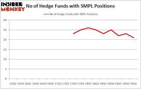 At Q3’s end, a total of 21 of the hedge funds tracked by Insider Monkey were long this stock, a change of -9% from the previous quarter. The graph below displays the number of hedge funds with bullish position in SMPL over the last 17 quarters. With hedge funds’ capital changing hands, there exists a select group of key hedge fund managers who were upping their stakes substantially (or already accumulated large positions).