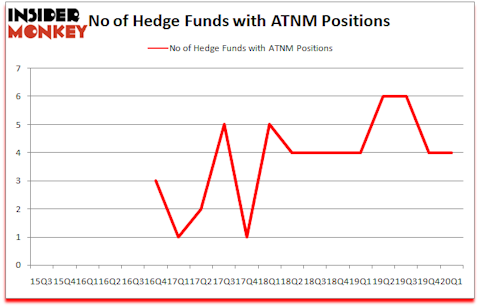 At the end of the first quarter, a total of 4 of the hedge funds tracked by Insider Monkey were bullish on this stock, a change of 0% from the fourth quarter of 2019. Below, you can check out the change in hedge fund sentiment towards ATNM over the last 18 quarters. So, let’s find out which hedge funds were among the top holders of the stock and which hedge funds were making big moves.
