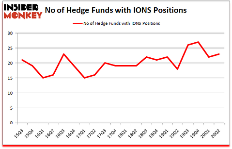 Ionis Pharmaceuticals, Inc. (NASDAQ:IONS) investors should be aware of an increase in hedge fund interest of late. Ionis Pharmaceuticals, Inc. (NASDAQ:IONS) was in 23 hedge funds’ portfolios at the end of June. The all time high for this statistics is 27. There were 22 hedge funds in our database with IONS holdings at the end of March. Our calculations also showed that IONS isn’t among the 30 most popular stocks among hedge funds (click for Q2 rankings and see the video for a quick look at the top 5 stocks).