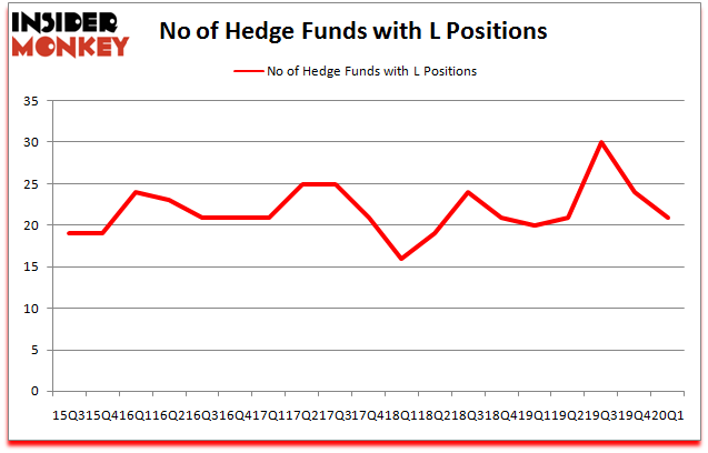 At Q1’s end, a total of 21 of the hedge funds tracked by Insider Monkey were bullish on this stock, a change of -13% from the previous quarter. By comparison, 20 hedge funds held shares or bullish call options in L a year ago. With hedgies’ capital changing hands, there exists an “upper tier” of noteworthy hedge fund managers who were increasing their stakes substantially (or already accumulated large positions).