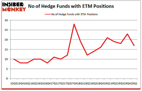 Heading into the second quarter of 2020, a total of 17 of the hedge funds tracked by Insider Monkey were long this stock, a change of -26% from the fourth quarter of 2019. By comparison, 21 hedge funds held shares or bullish call options in ETM a year ago. With hedge funds’ capital changing hands, there exists an “upper tier” of noteworthy hedge fund managers who were adding to their stakes meaningfully (or already accumulated large positions).