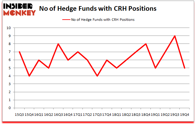 CRH PLC (NYSE:CRH) was in 5 hedge funds’ portfolios at the end of the fourth quarter of 2019. CRH investors should pay attention to a decrease in hedge fund sentiment lately. There were 9 hedge funds in our database with CRH positions at the end of the previous quarter. Our calculations also showed that CRH isn’t among the 30 most popular stocks among hedge funds (click for Q4 rankings and see the video below for Q3 rankings).